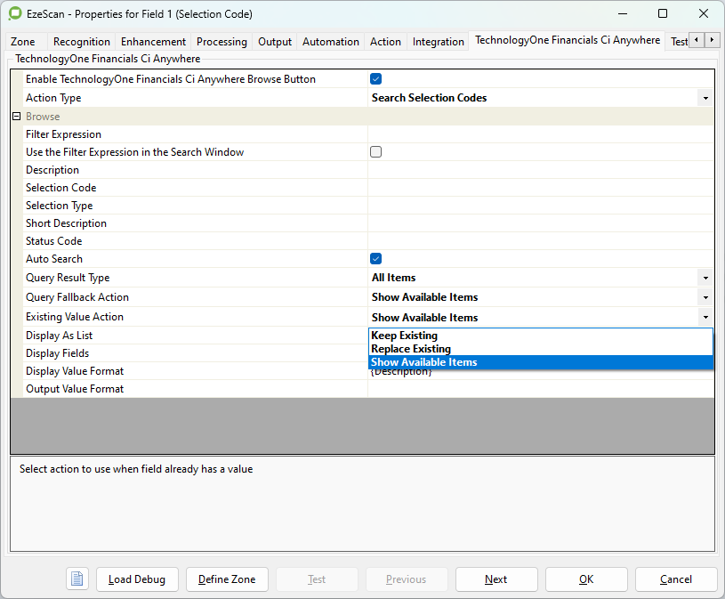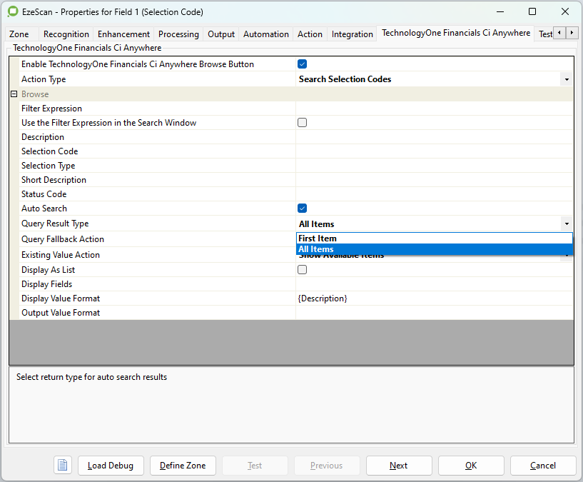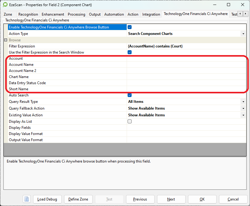 The fields that can be searched can be determined by browsing either the Display Value Format and Output Value Format settings.
