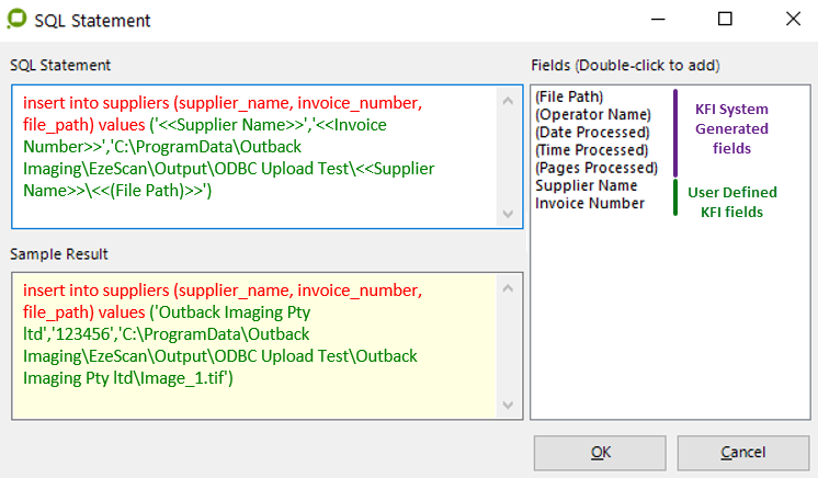 System placeholders can also be used. Please refer to the System Placeholders section in the Appendices of the EzeScan User Guide