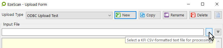When the EzeScan image viewer is not displaying images, the Upload Admin form allows the operator to manage (create, edit, delete, rename) any of the available Upload types.