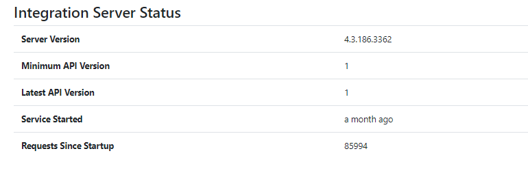Upon clicking save it will report information back of the Integration Server.