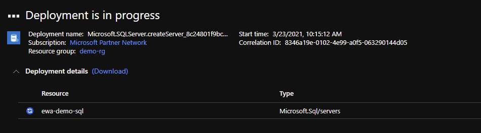 5. Wait for the SQL Server to be deployed.