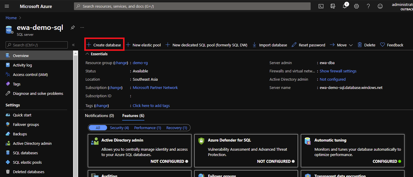 Create the SQL Database Server