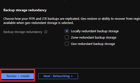 3. Enter the details for your SQL server and click Review + Create.