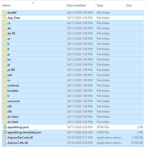 - Browse to the location of your EWA installation in windows explorer and remove all of the files except the App_Data folder and the appsettings.json file.