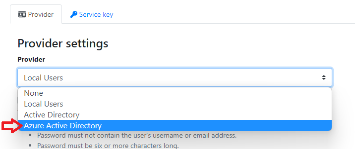- Change the provider to Azure Active Directory