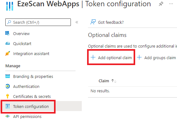 - Navigate to Token configuration and click Add optional claim