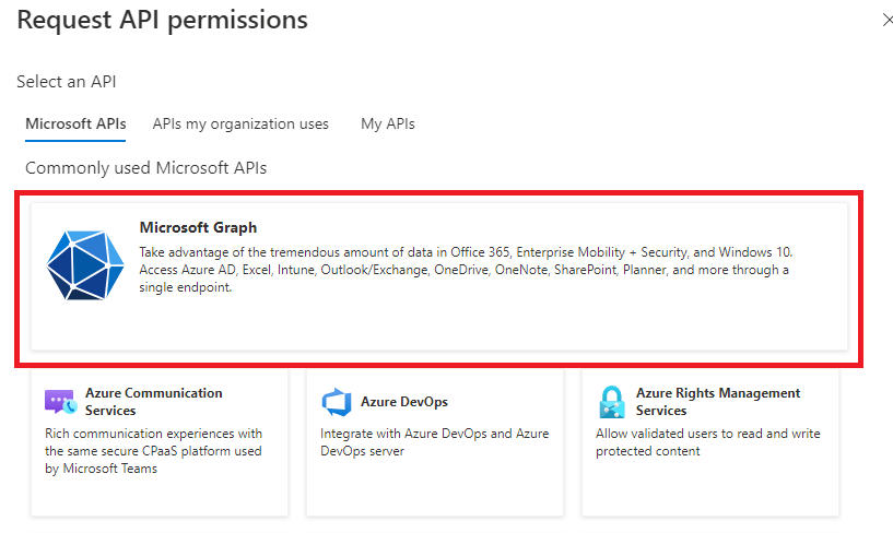 - Select the Microsoft Graph option.