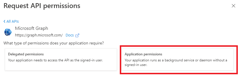 - Select Application permissions.