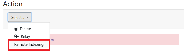 - In the Action drop down select the Remote Indexing option.