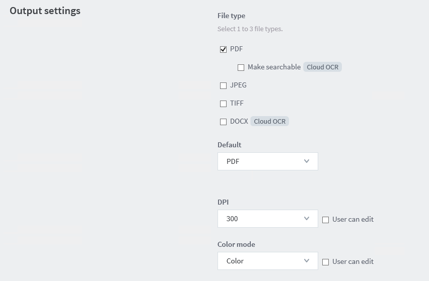 Option Value File type PDF Default PDF DPI 300