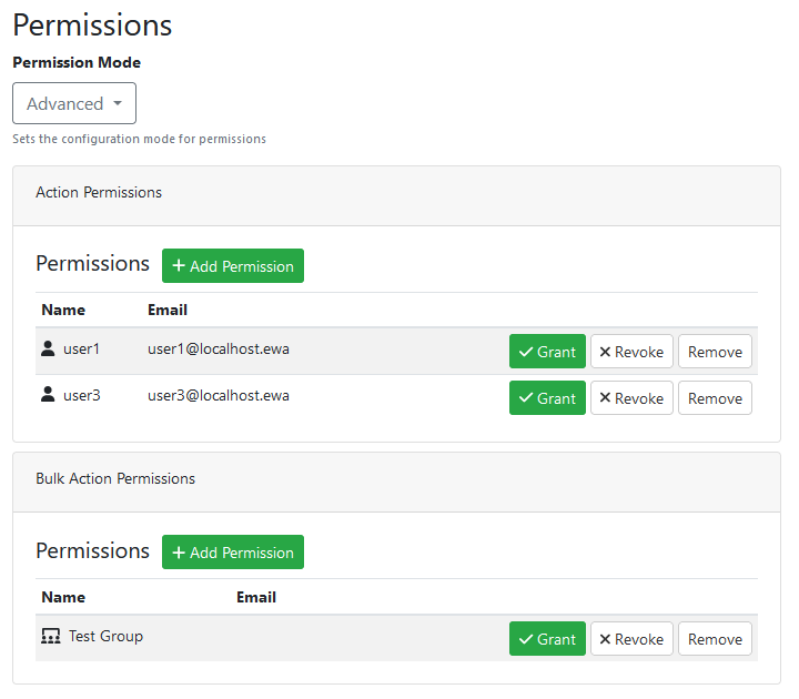 Advanced mode allows you to select specific Users or Groups that will have access to the action.