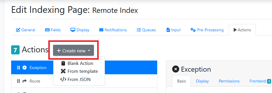 A remote indexing page can have any number of configurable action buttons.