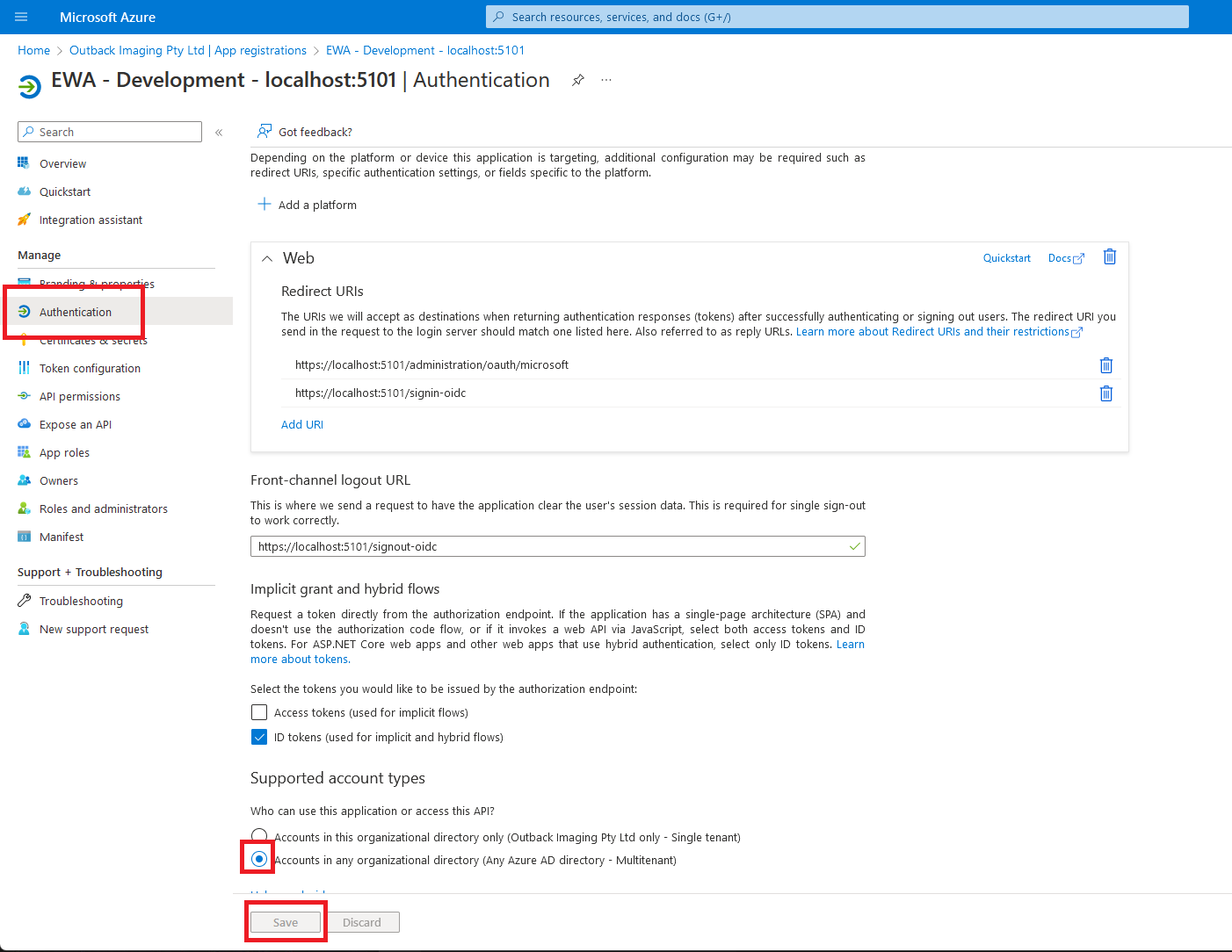 Set up the app registration in one of the tenants by following only the “Setting up Authentication” section on Authenticating with Azure AD via OpenID Connect
