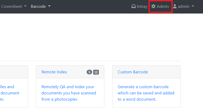 - Navigate back to EzeScan WebApps and Login as a user with admin access and navigate to the Admin panel.
