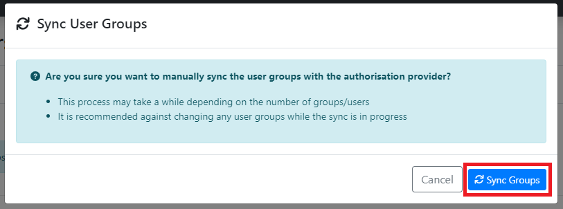 - Click the Sync Groups button on the modal.