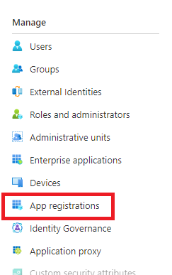 - On the left menu select App Registrations.