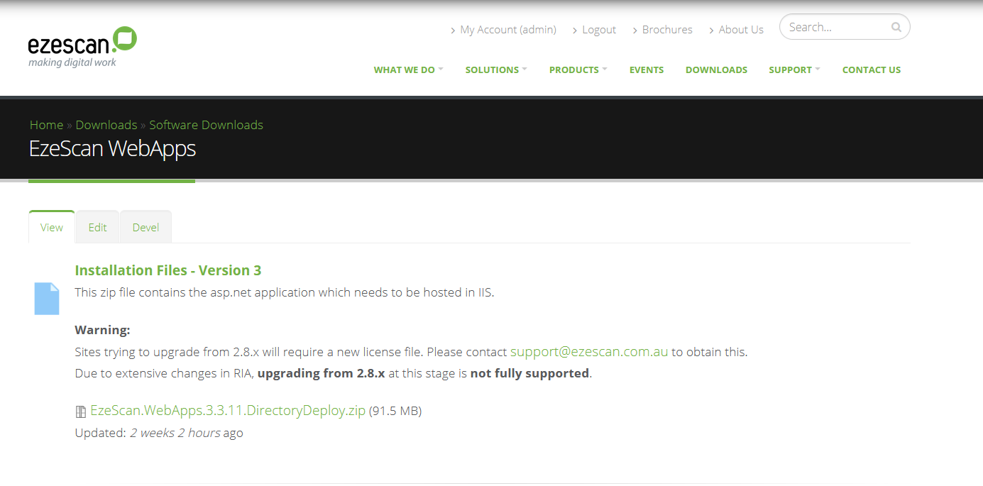 - Go to Downloads > Software Downloads > EzeScan Webapps