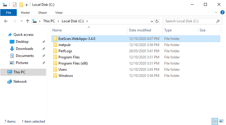 - Rename the folder to EzeScan.WebApps to remove the version number.