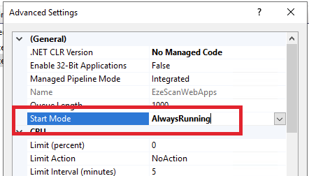 - Right click EzeScanWebApps > select Advanced Settings...