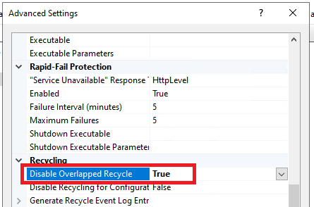 - Set the Disable Overlapped Recycle to True.
