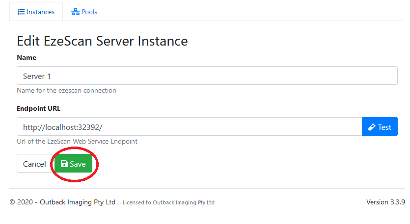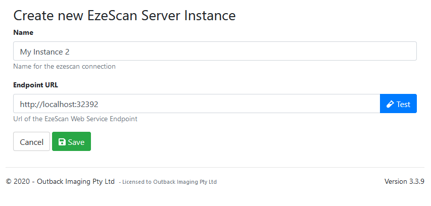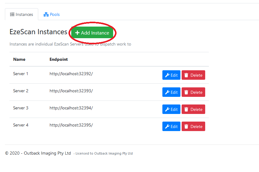 This page displays your configured EzeScan Instances.