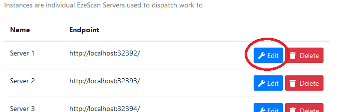 - Click the Edit button for a configured instance.