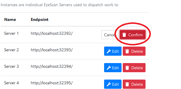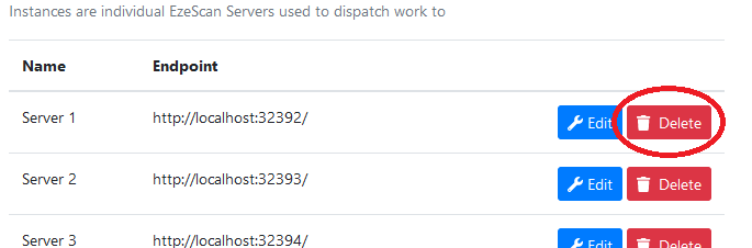 - Click the Delete button for the instance you wish the delete.