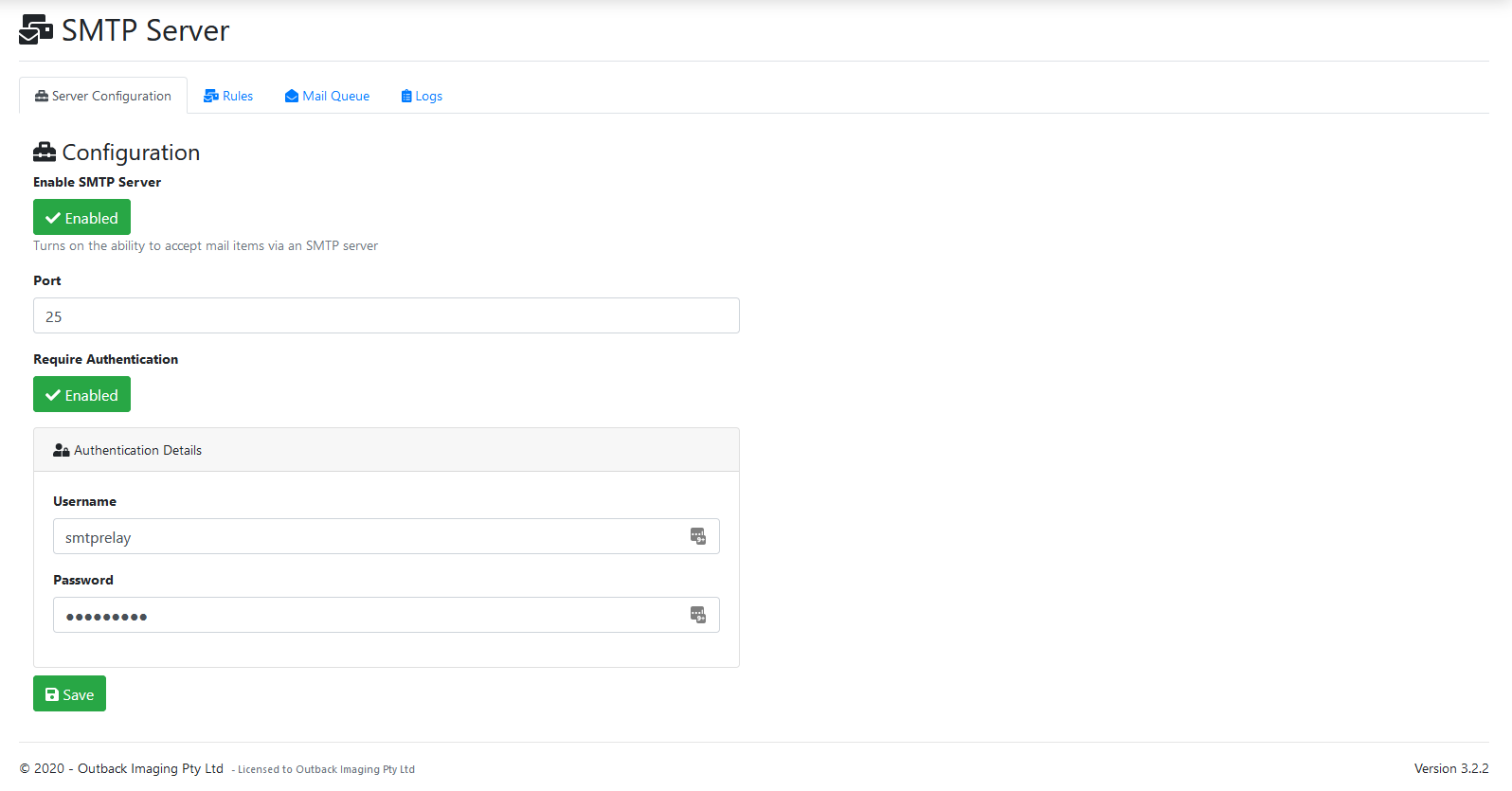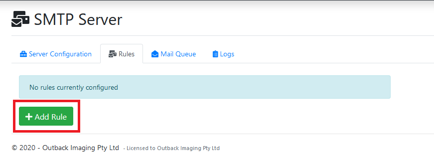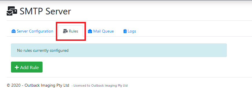 - Select the Rules tab in the SMTP Server configuration options within the admin panel.