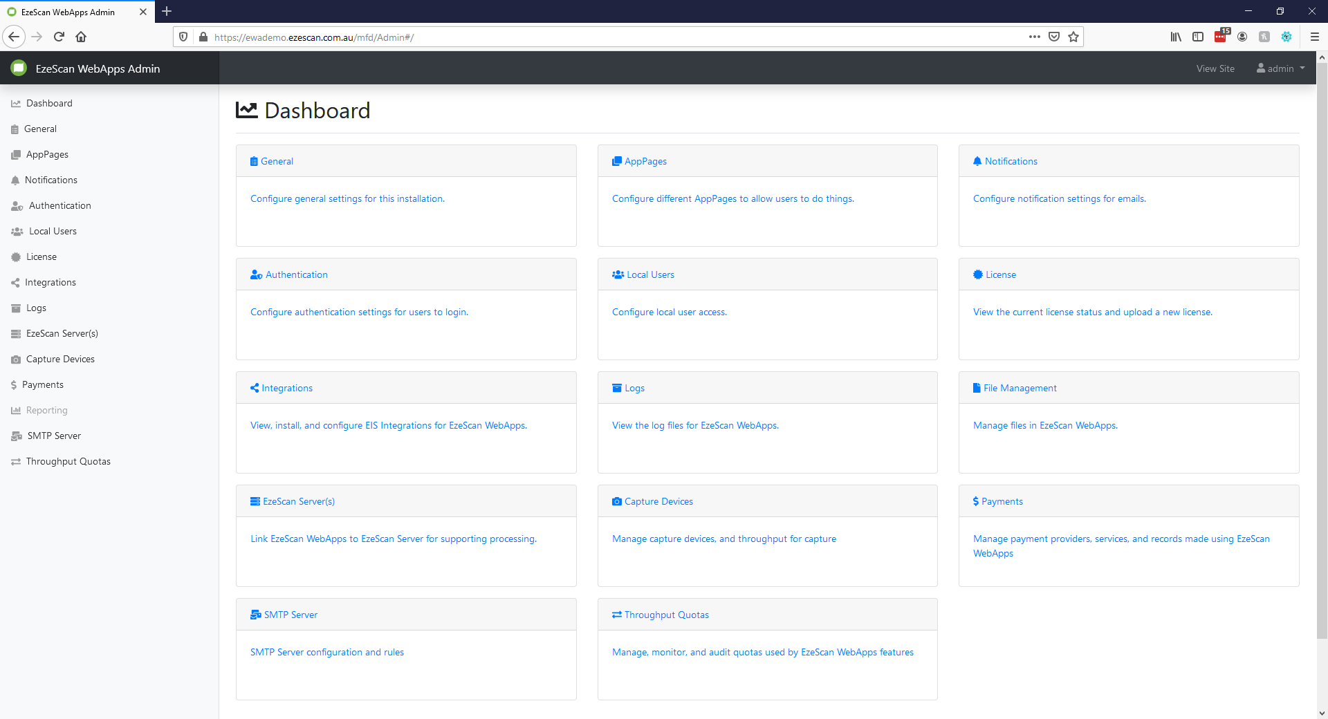 - Log into EzeScan WebApps and navigate to the admin panel.