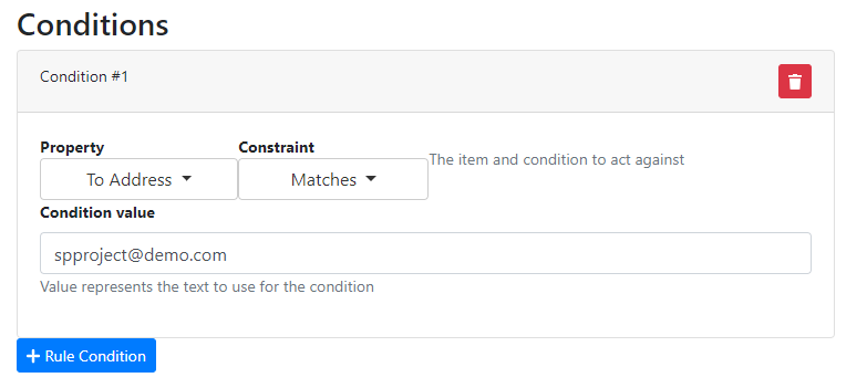 Option Value Property To Address Constraint Matches Condition Value spproject@demo.com