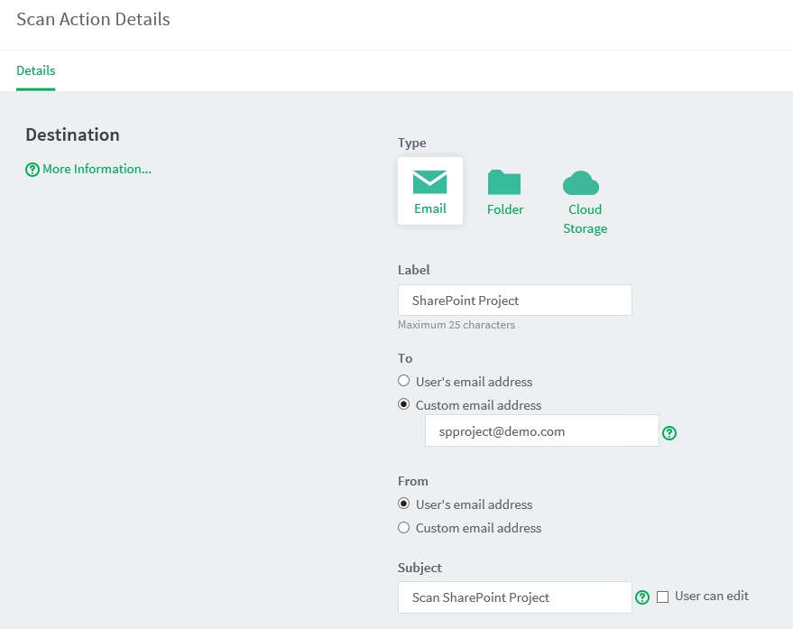 From User's email address Subject Scan SharePoint Project