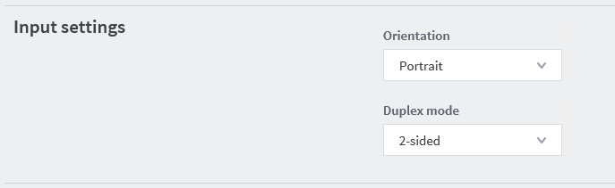 Option Value Orientation Portrait Duplex mode 2-sided