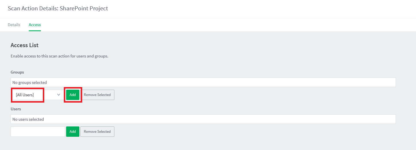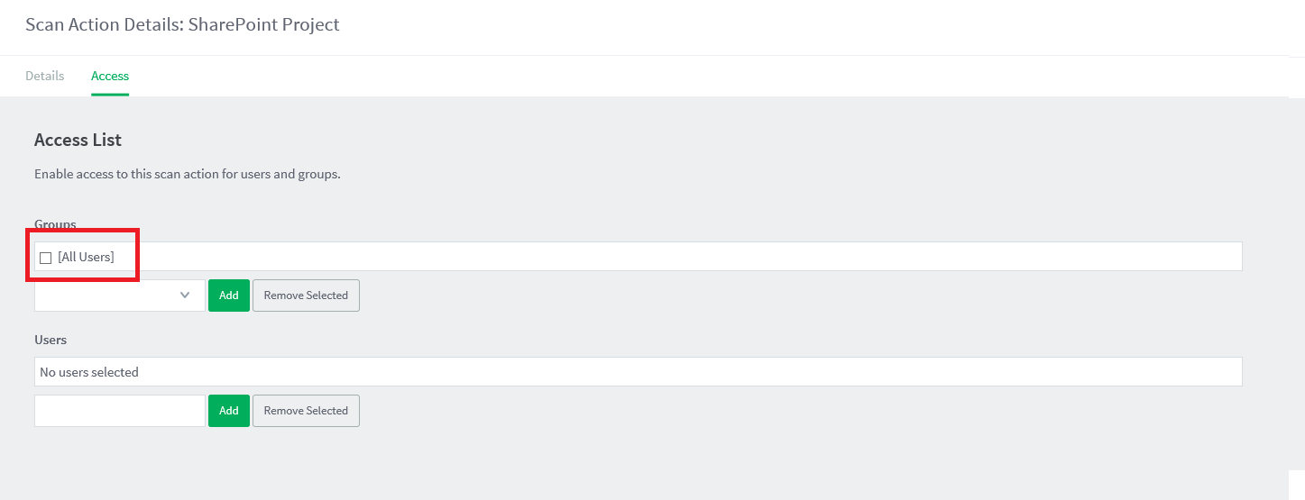 - Confirm you can now see the [All Users] option in the Access List.