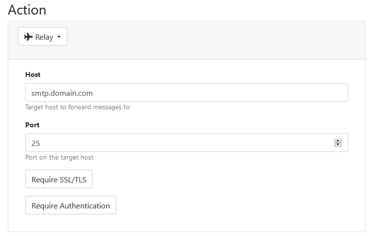 - In the Action drop down select the Relay option.