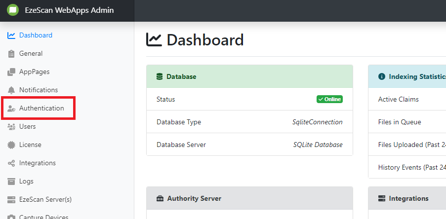 - Navigate back to EzeScan WebApps and Login as a user with admin access and navigate to the Admin panel.