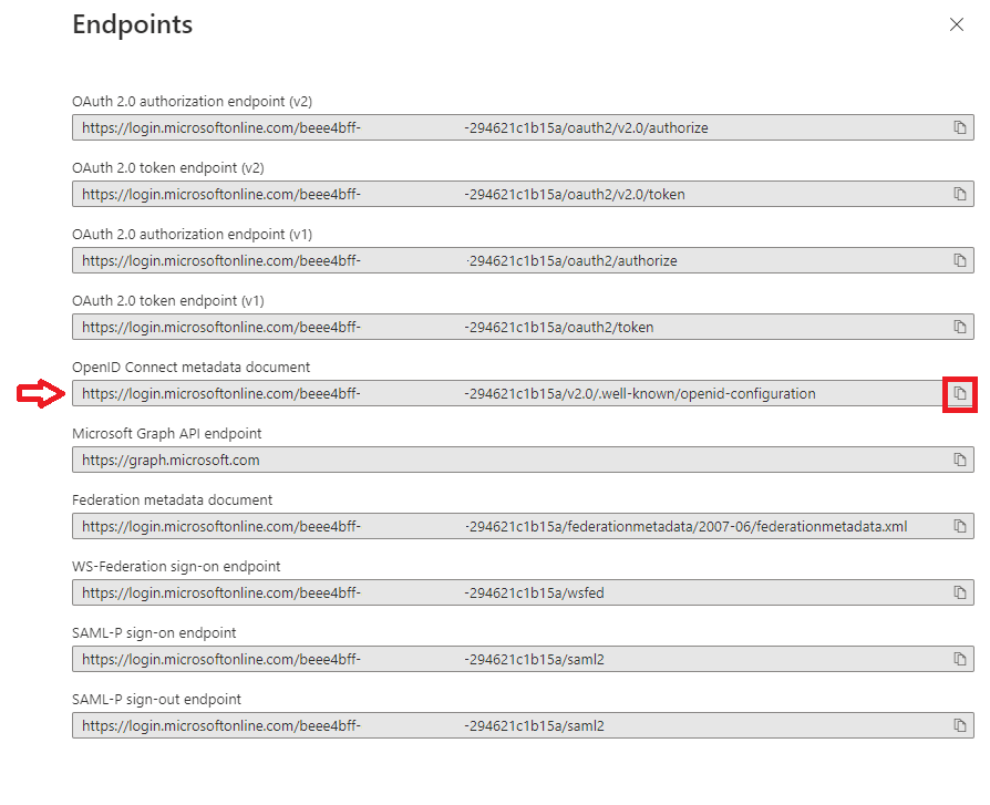 - Take note of the OpenID Connect metadata document URL by clicking the copy to clipboard button and saving it somewhere safe for later use.