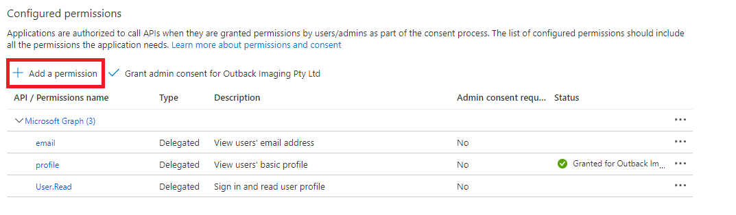 - Click the Add a permission link.