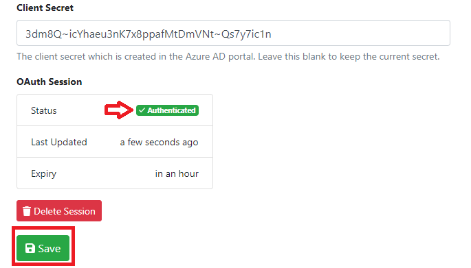 Option Value Application (client) ID The application id that has been generated in the Azure AD portal. Directory (tenant) ID The tenant id for your organisation that can be found in the Azure AD portal. Client Secret The client secret which is created in the Azure AD portal. Leave this blank to keep the current secret.