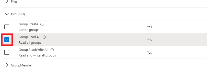 - Find and then tick the Group.Read.All permission.