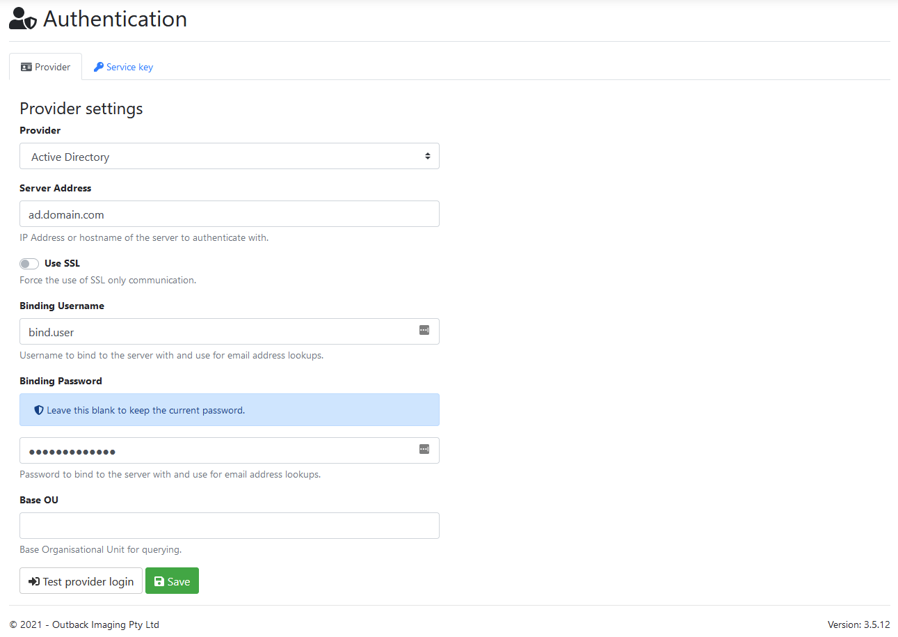 If the password field is not populated then the Test provider login button will test the connection using the saved password.