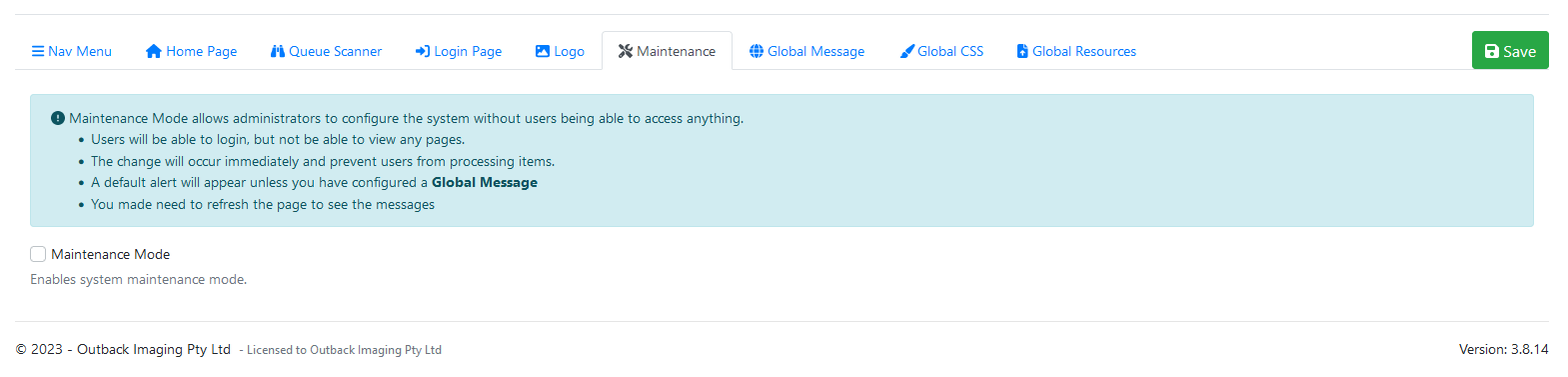Maintenance Mode | Tick this to enable Maintenance Mode. |