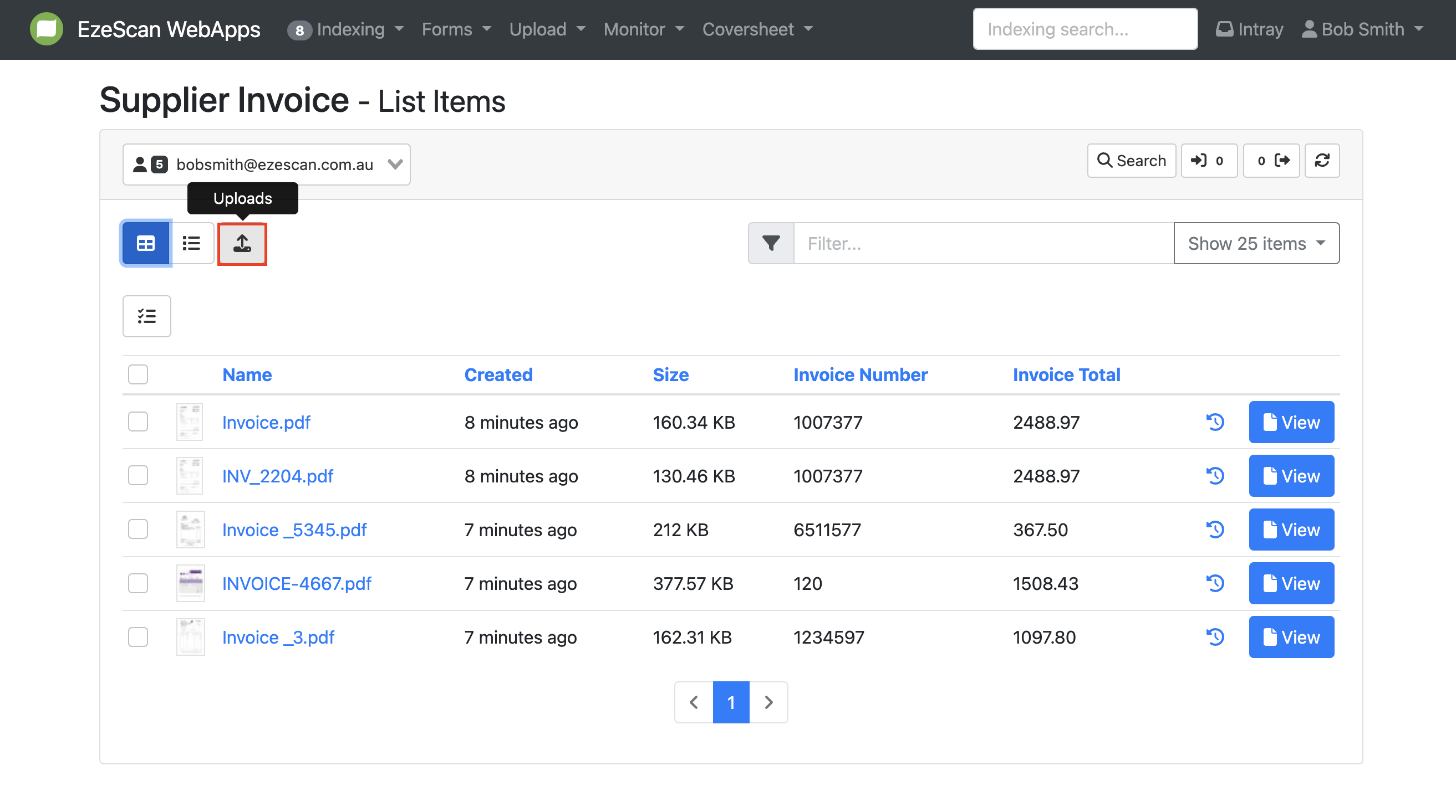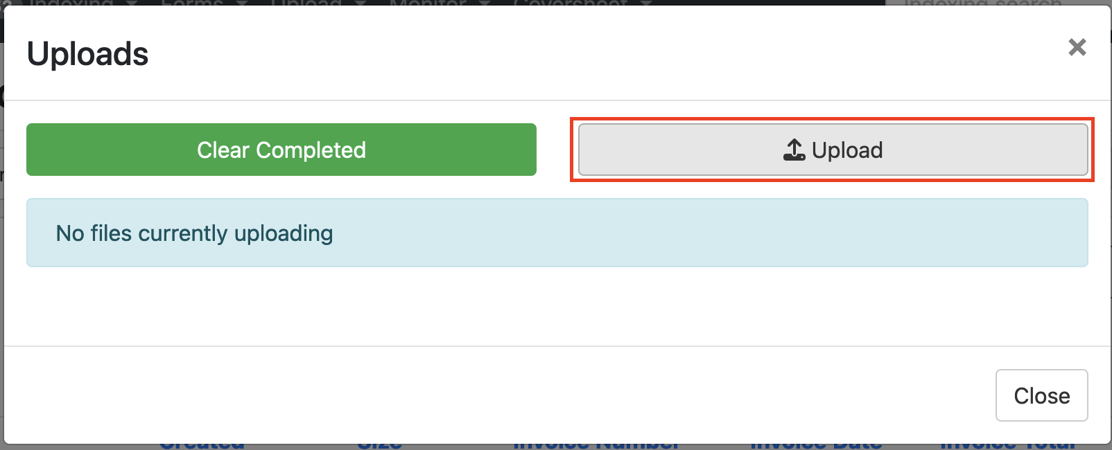 The “Uploads” button gives you the ability to upload directly upload a document from your browser to that queue for processing.