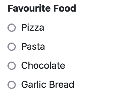 ![]() | Radio Buttons Users can select only one option from the available choices. When one option is selected, it automatically deselects any previously selected option within the same group. |