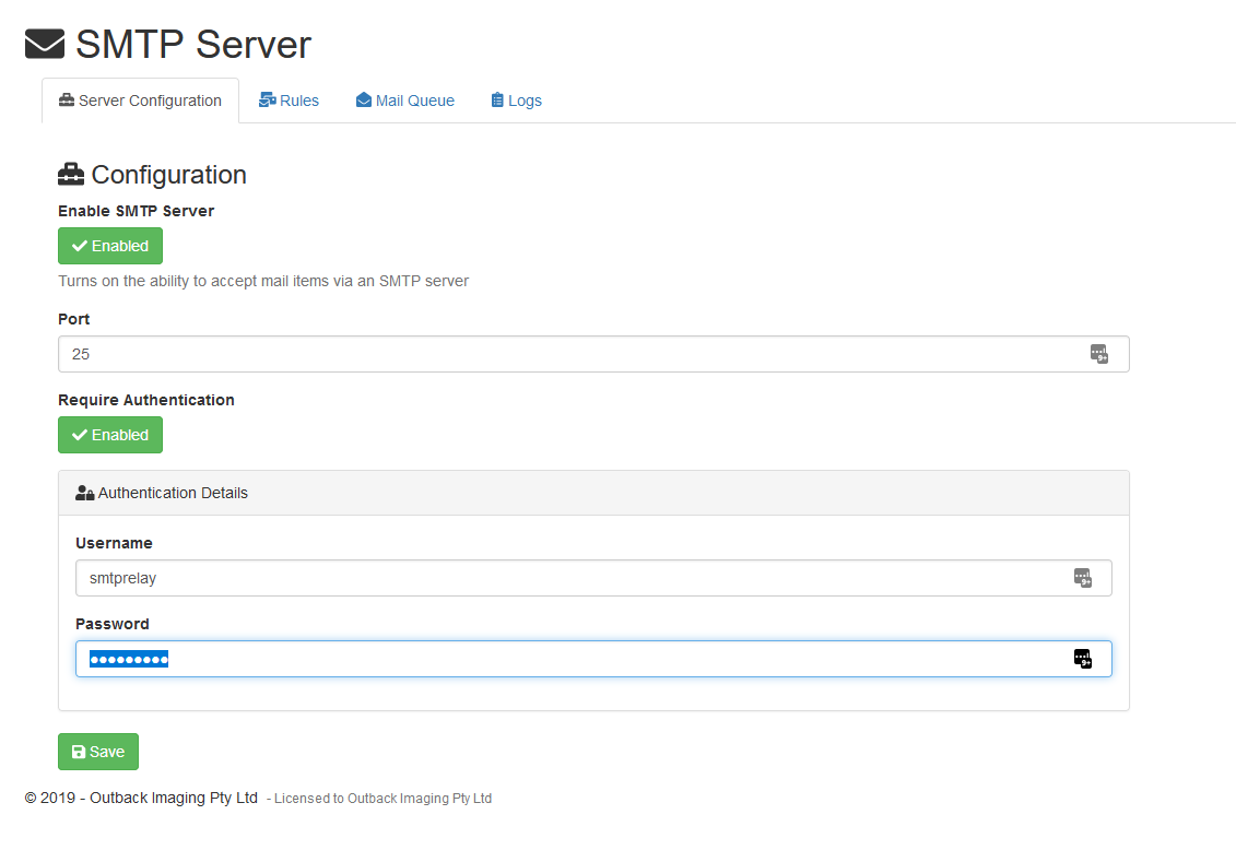Enable this toggle to start the SMTP server.